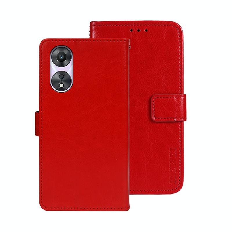 Θήκη τηλεφώνου idewei από δέρμα Crazy Horse με υφή για OPPO A78 5G Global/A58x/A58 5G με βάση στήριξης (Καφέ) (Κόκκινο)