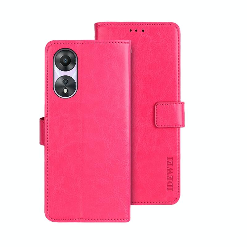 Θήκη τηλεφώνου idewei από δέρμα Crazy Horse με υφή για OPPO A78 5G Global/A58x/A58 5G με βάση στήριξης (Καφέ) (Ροζέ κόκκινο)