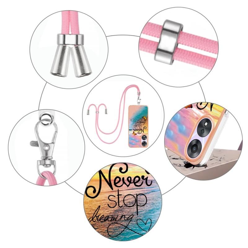 Θήκη τηλεφώνου TPU με ηλεκτρολυτική επιμετάλλωση IMD και λουρί για OPPO A78 / A58 (Όνειρο Πεταλούδας)