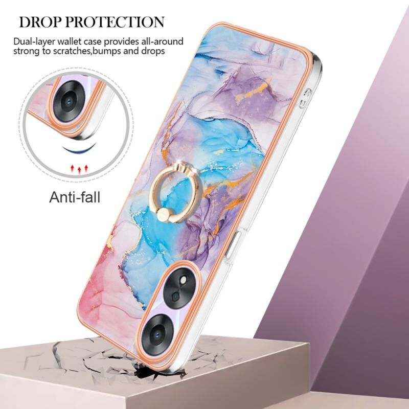 Θήκη τηλεφώνου OPPO A78 / A58 με δακτύλιο, από TPU με ηλεκτρολυτική επιμετάλλωση IMD (Μπλε Μάρμαρο)