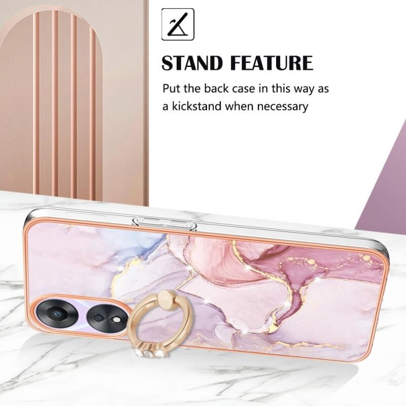 Θήκη τηλεφώνου TPU με Ηλεκτρολυτική Επιμετάλλωση από Μάρμαρο IMD με Δακτύλιο για OPPO A78 / A58 (Ροζ Χρυσός 005)