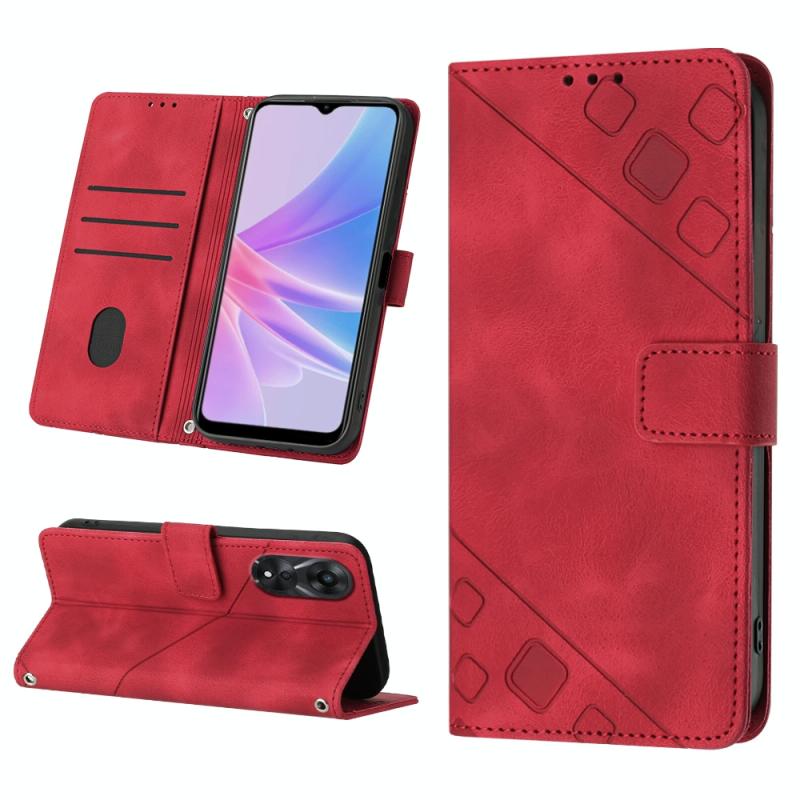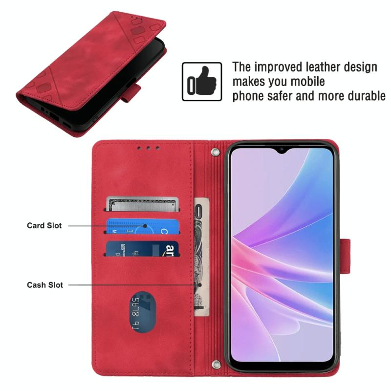Θήκη τηλεφώνου από δέρμα με ανάγλυφη υφή για OPPO A78 (Κόκκινο)