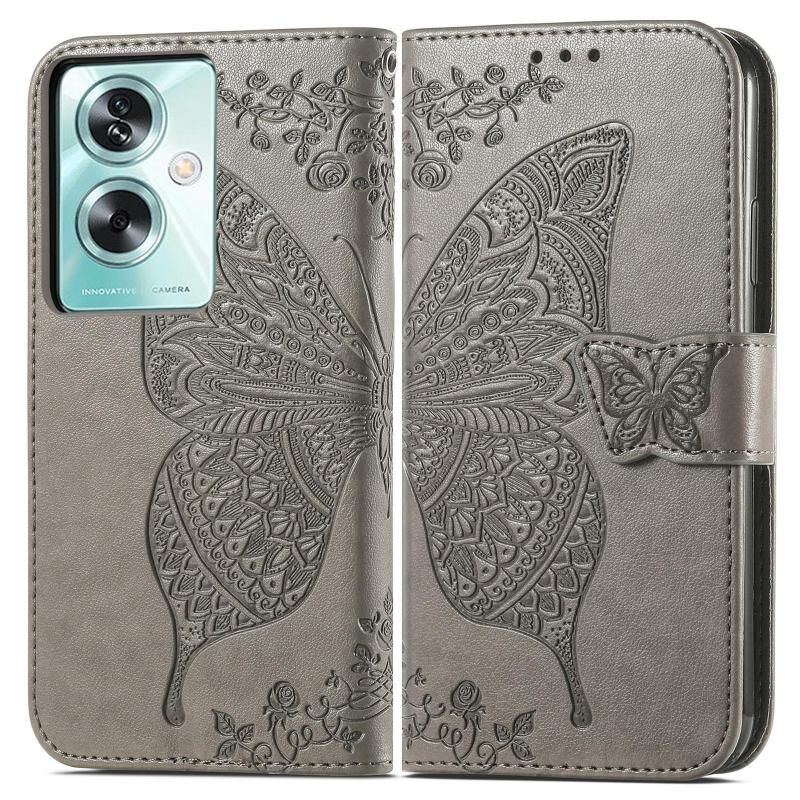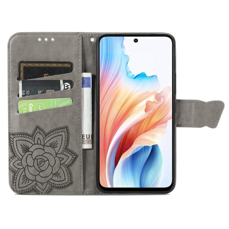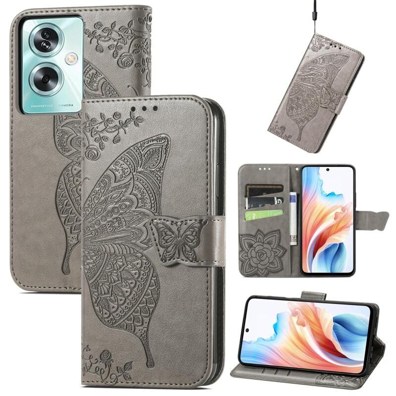 For OPPO A79 5G / A2 5G Butterfly Love Flower Embossed Leather Phone Case(Grey)