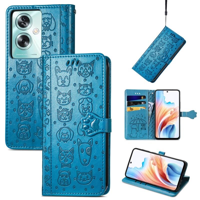 Θήκη τηλεφώνου από δέρμα με ανάγλυφο σχέδιο γάτας και σκύλου για OPPO A79 5G / A2 5G (Μπλε)