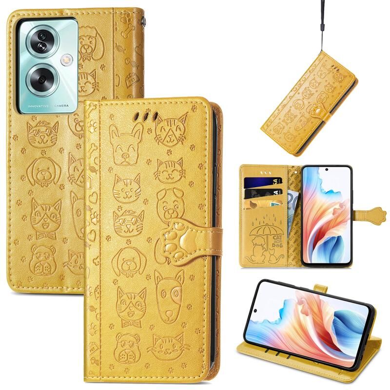 Θήκη τηλεφώνου από δέρμα με ανάγλυφο σχέδιο γάτας και σκύλου για OPPO A79 5G / A2 5G (Κίτρινο)