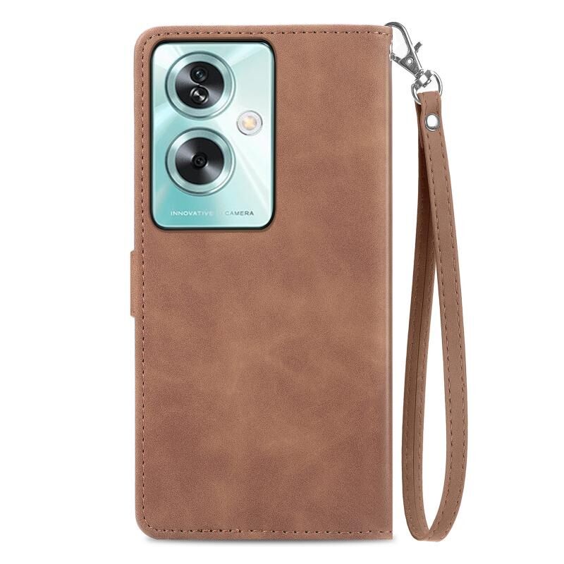 Για OPPO A79 5G / A2 5G ανάγλυφο λουλούδι φερμουάρ δερμάτινη θήκη τηλεφώνου (Καφέ)