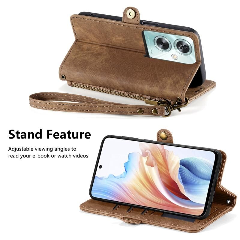 Θήκη τηλεφώνου από δέρμα με γεωμετρικό φερμουάρ και πλευρική αγκράφα για OPPO A79 5G / A2 5G (Πράσινο)
