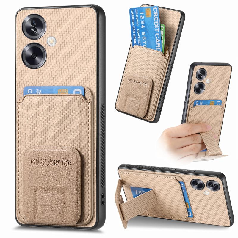 Θήκη για OPPO A79 5G από ανθρακονήματα με κάρτες & βάση στήριξης (Χακί)