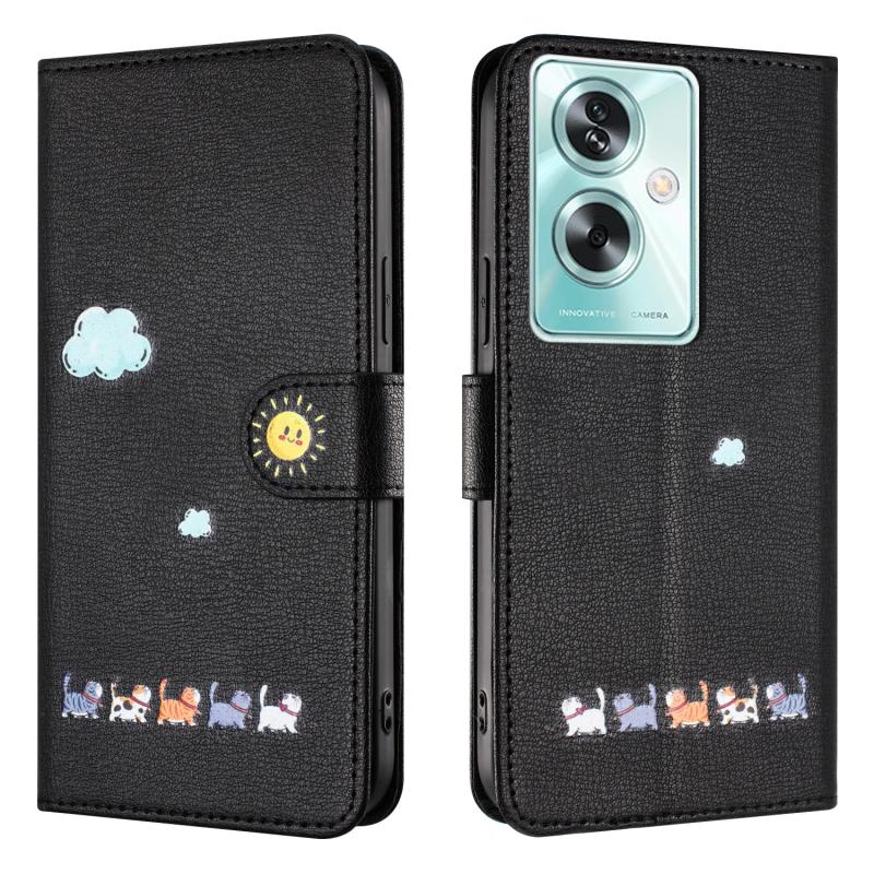 Θήκη τηλεφώνου από δέρμα με σχέδια καρτούν γάτας για OPPO A79 5G (Μαύρο)