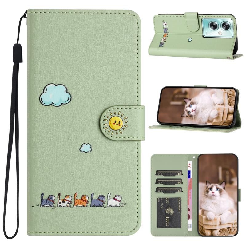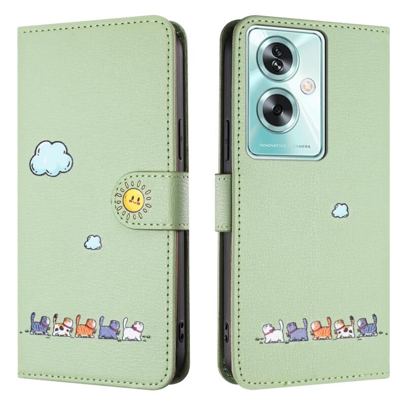 Θήκη τηλεφώνου από δέρμα με σχέδια καρτούν γάτας για OPPO A79 5G (πράσινο)