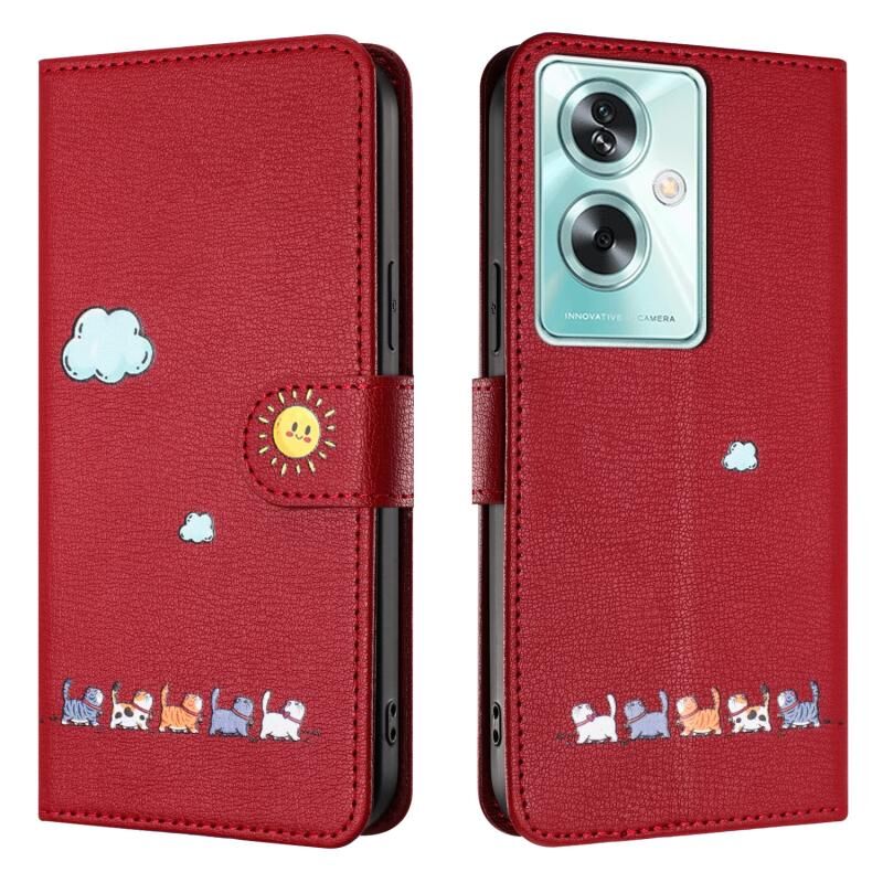 Θήκη τηλεφώνου από δέρμα με σχέδια καρτούν γάτας για OPPO A79 5G (Κόκκινο)