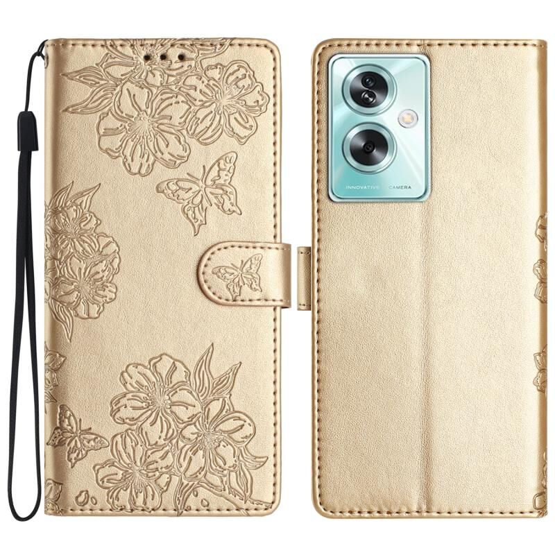 Θήκη τηλεφώνου OPPO A79 5G με ανάγλυφο PU, αίσθηση δέρματος, σχέδιο κερασιού και πεταλούδας (Κόκκινο)