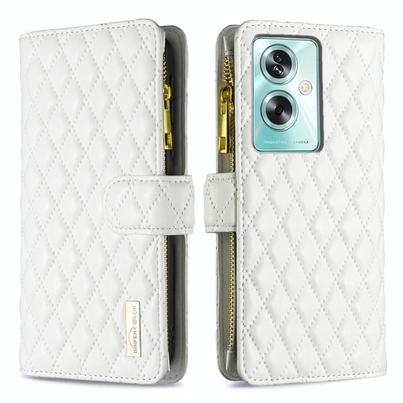 Για OPPO A79 5G Diamond Lattice φερμουάρ πορτοφόλι δέρμα Flip τηλέφωνο υπόθεση (λευκό)