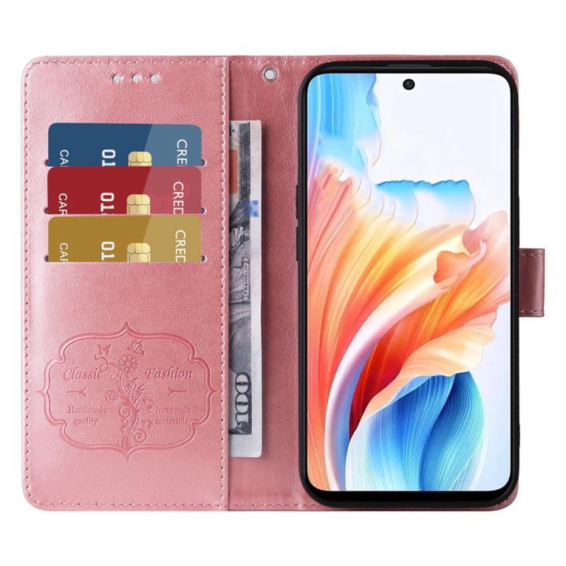 For OPPO A79 5G Embossed Butterfly Flowers Leather Phone Case(Rose Gold)