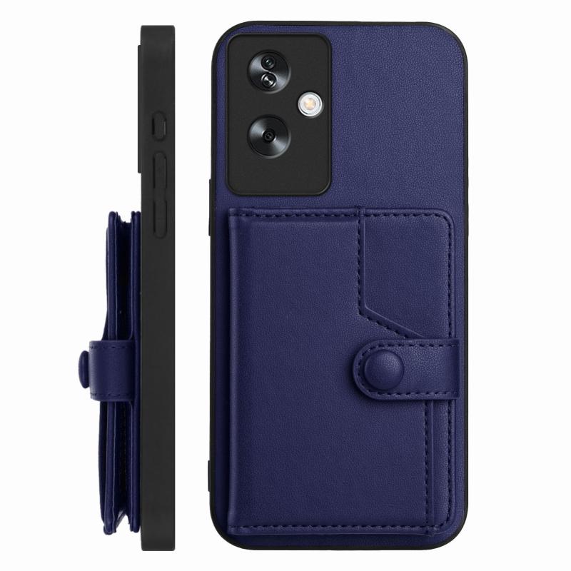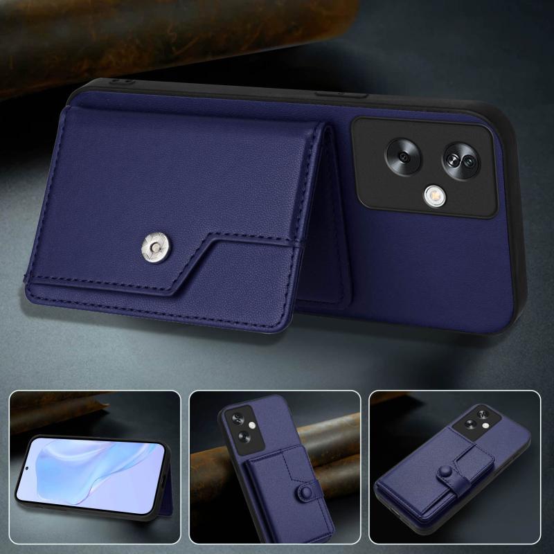 For OPPO A79 5G Global Button Card Bag RFID Anti-theft Phone Case(Blue)