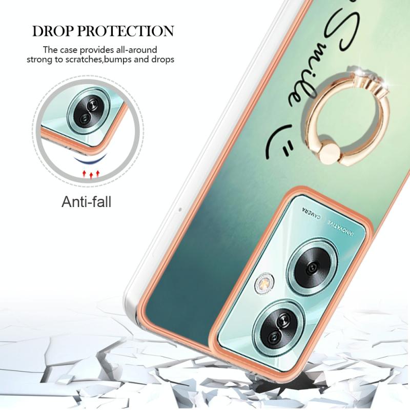 Θήκη τηλεφώνου με δακτύλιο και σχέδιο χαμόγελου για OPPO A79 5G Global, με ηλεκτρολυτική επικάλυψη και IMD σε διπλές πλευρές.