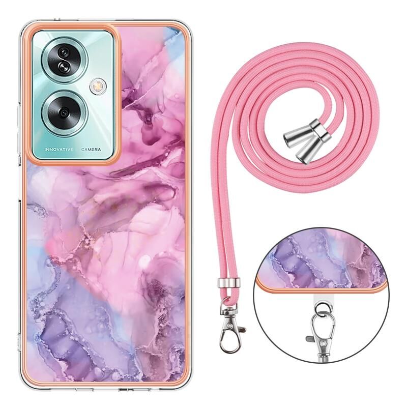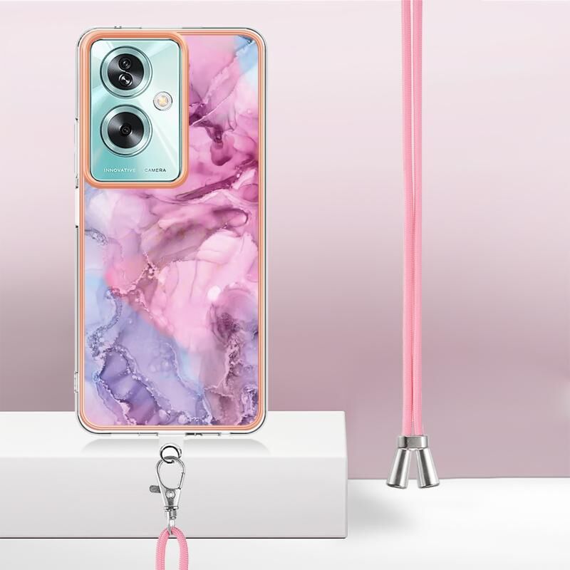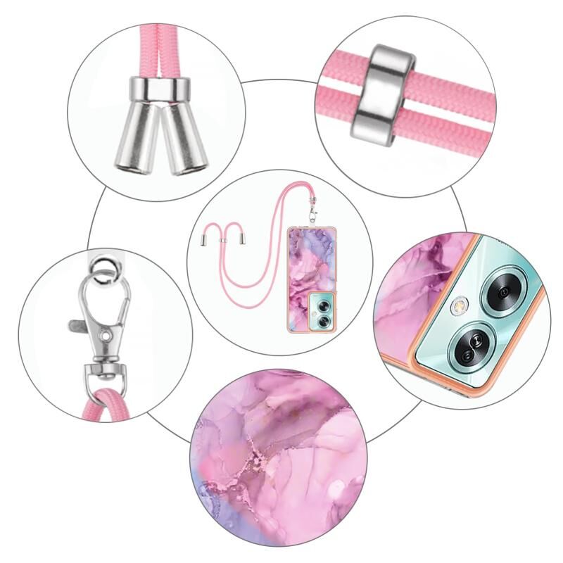 Θήκη τηλεφώνου με κορδόνι για OPPO A79 5G Global, με ηλεκτρολυτική μαρμάρινη επένδυση διπλής όψης IMD (Κόκκινο Ρόδο 014)