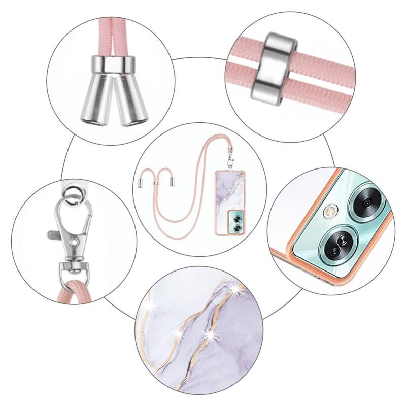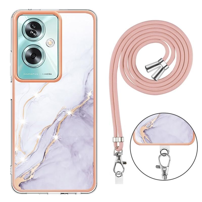 Θήκη τηλεφώνου για OPPO A79 5G Global με ηλεκτρολυτική μαρμάρινη επένδυση IMD διπλής όψης με κορδόνι (Μωβ 001)