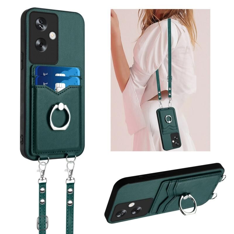 Για OPPO A79 5G Global R20 Crossbody σχοινί δαχτυλίδι κάρτα κάτοχος υπόθεση τηλεφώνου (πράσινο)
