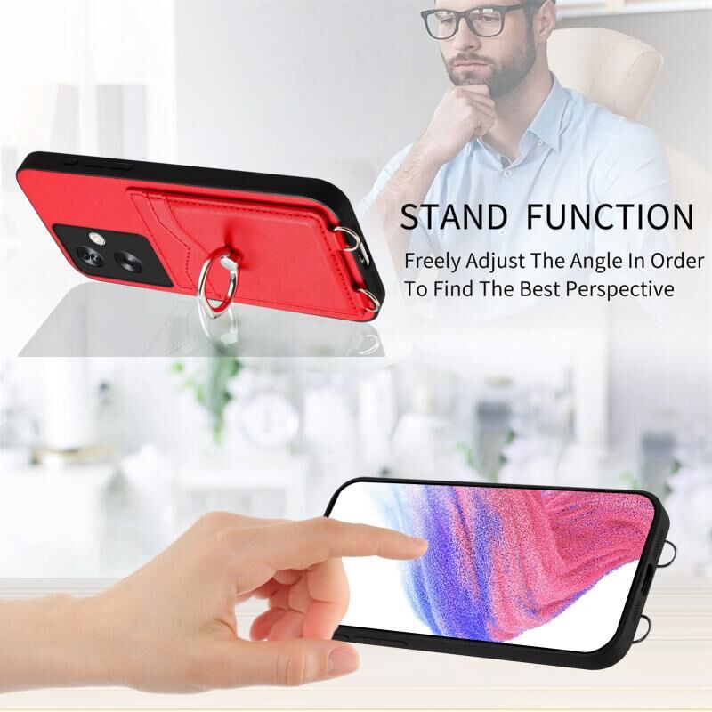 Για OPPO A79 5G Global R20 Crossbody σχοινί δαχτυλίδι κάρτα κάτοχος υπόθεση τηλεφώνου (Κόκκινο)