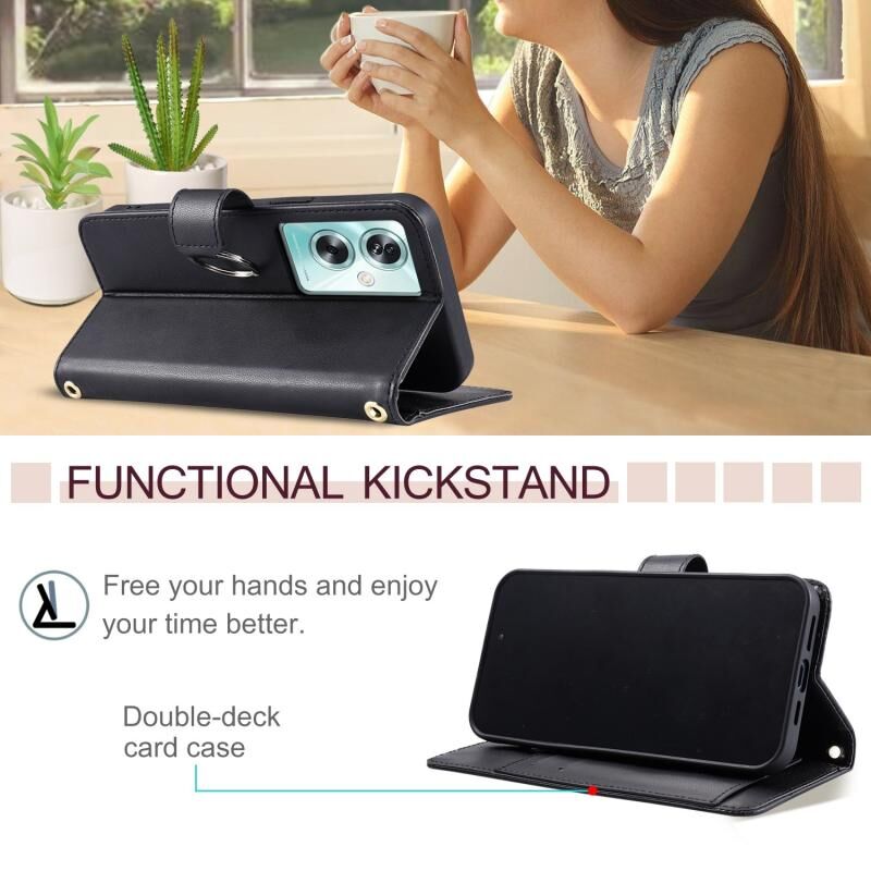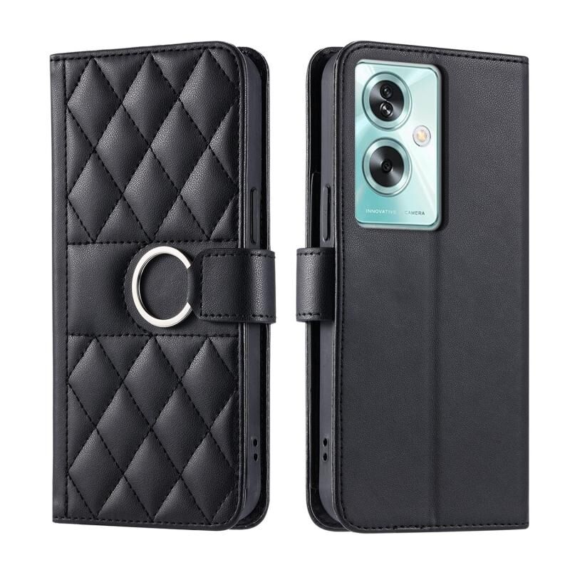 Θήκη τηλεφώνου από δέρμα με γεωμετρικό σχέδιο και μεταλλικό δακτύλιο για OPPO A79 5G (Κόκκινο)