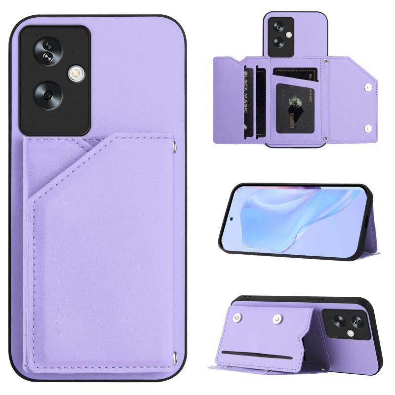 Θήκη τηλεφώνου για OPPO A79 5G Global με αίσθηση δέρματος, τέσσερις υποδοχές καρτών και λουρί καρπού (Ροζ)