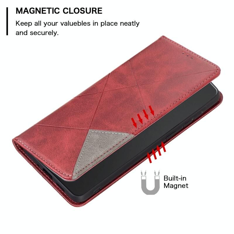 Για OPPO A79 5G Prismatic Invisible μαγνητική δερμάτινη θήκη τηλεφώνου (Κόκκινο)