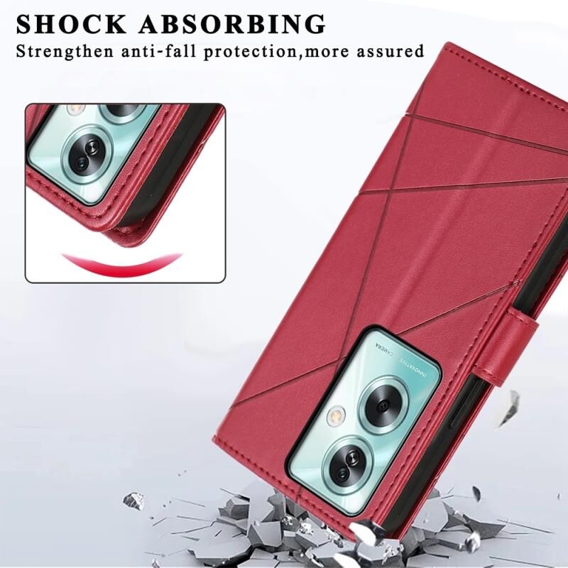 Θήκη τηλεφώνου για OPPO A79 5G από γνήσιο δέρμα PU με ανάγλυφη υφή και γραμμές (Κόκκινο)