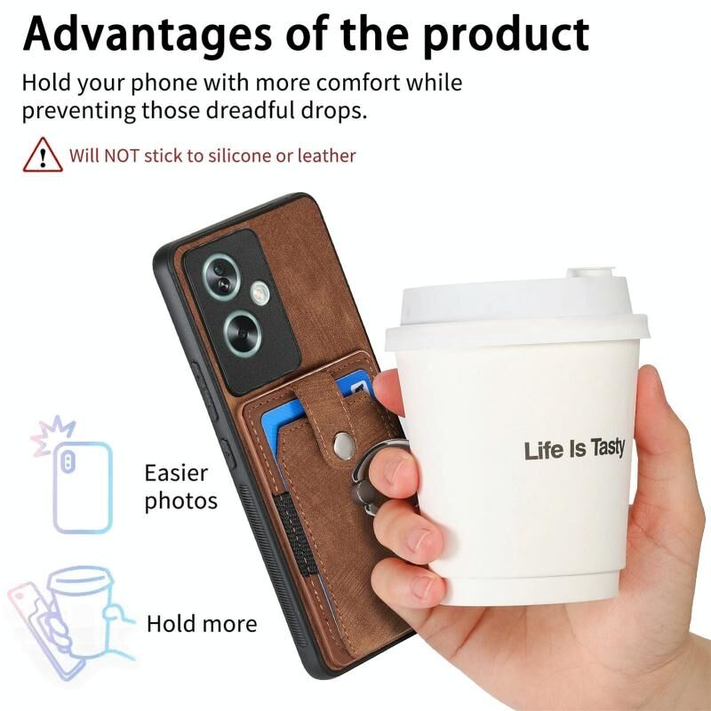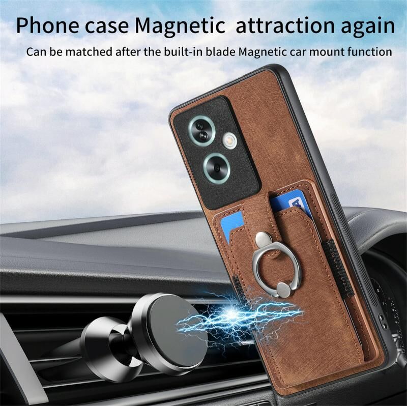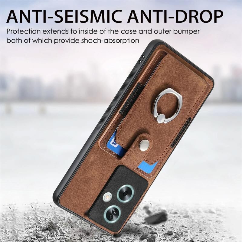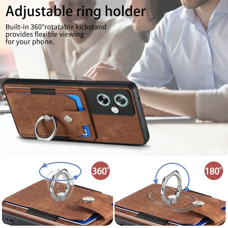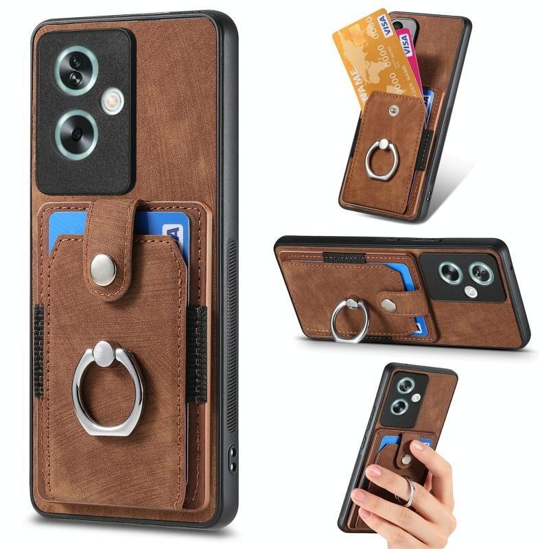 Για OPPO A79 5G Ρετρό δέρμα αίσθηση δαχτυλίδι πολυ-κάρτα πορτοφόλι τηλέφωνο υπόθεση (Καφέ)