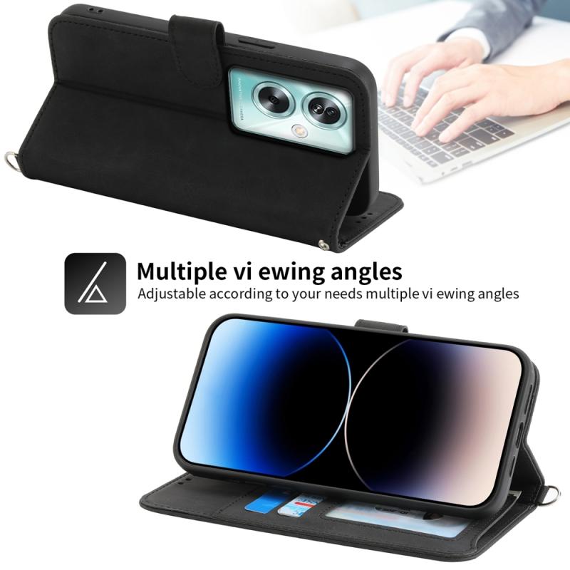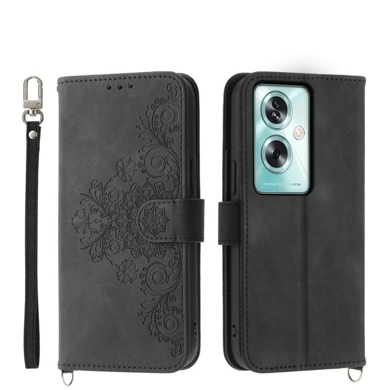 For OPPO A79 5G Skin Feel Flowers Embossed Wallet Leather Phone Case(Black)