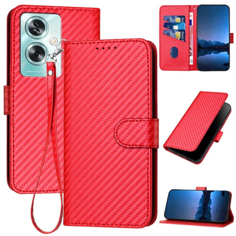 For OPPO A79 5G YX0070 Carbon Fiber Buckle Leather Phone Case with Lanyard(Red)