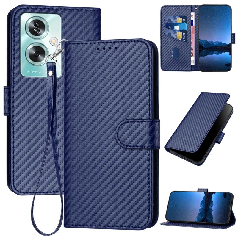 Θήκη τηλεφώνου από δέρμα με ανθρακονήματα και λουρί για OPPO A79 5G YX0070 (Κόκκινο)