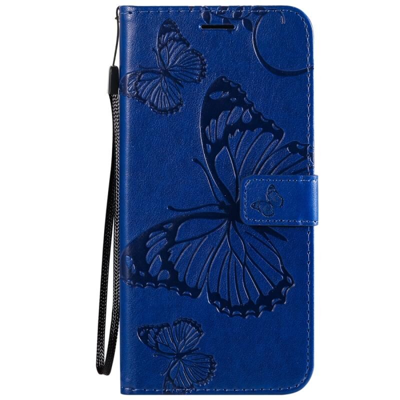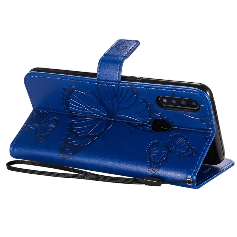 Θήκη δέρματος οριζόντιας αναδίπλωσης με ανάγλυφο σχέδιο 3D πεταλούδων για OPPO A8 / A31 (2020) με βάση στήριξης & υποδοχή κάρτας & πορτοφόλι & κορδόνι (Μπλε)