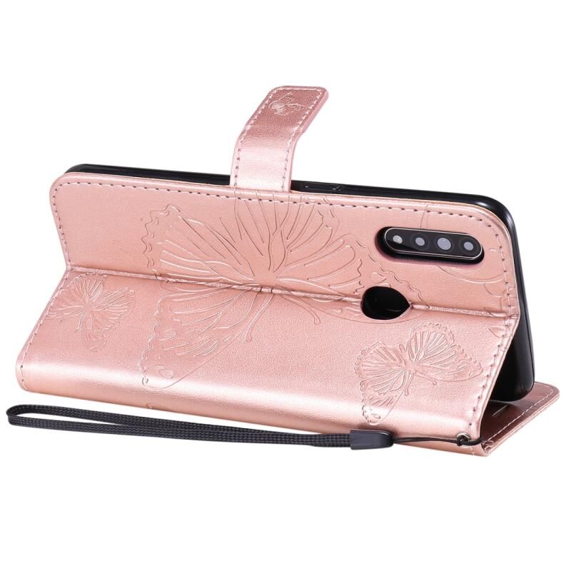 Για OPPO A8 / A31 (2020) 3D Θήκη Δέρματος Οριζόντιας Αναδίπλωσης με ανάγλυφο σχέδιο πεταλούδων, βάση στήριξης, θήκη καρτών, πορτοφόλι & λουρί (Χρυσός)