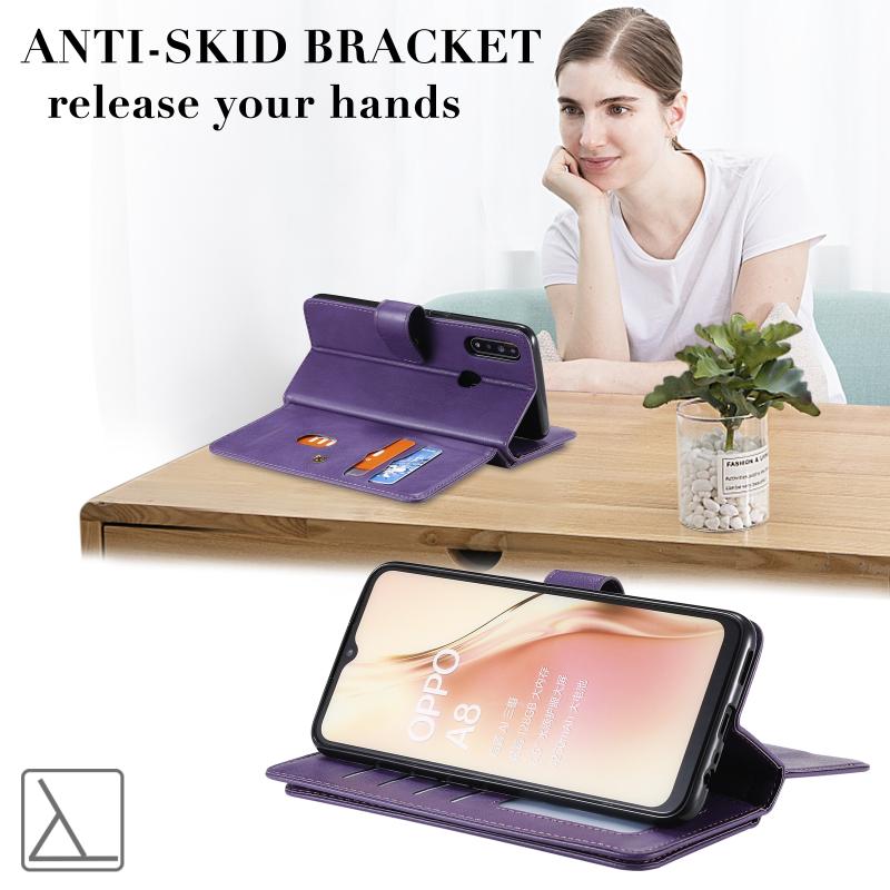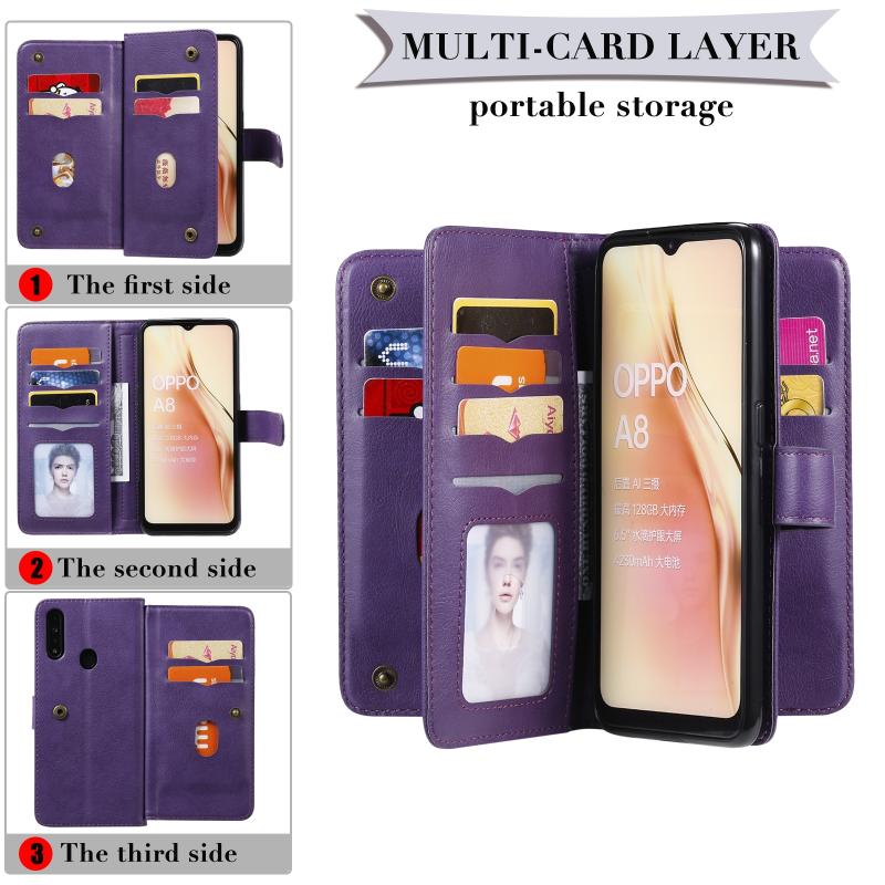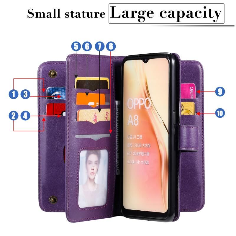 Για OPPO A8 / A31 (2020) Πολυλειτουργική Μαγνητική Θήκη Δερμάτινη Οριζόντια με Αγκράφα από Χαλκό σε Μονόχρωμο Σχέδιο με 10 Θήκες Καρτών & Πορτοφόλι & Στήριξη & Κορνίζα Φωτογραφιών (Μαύρο)