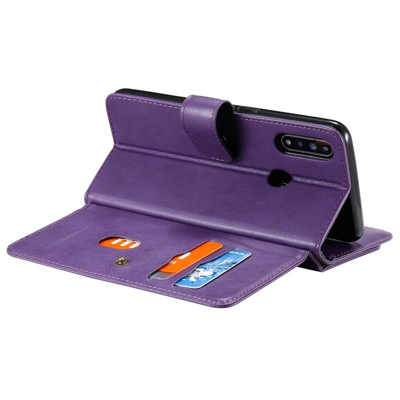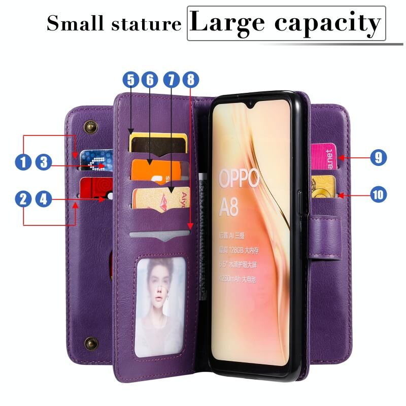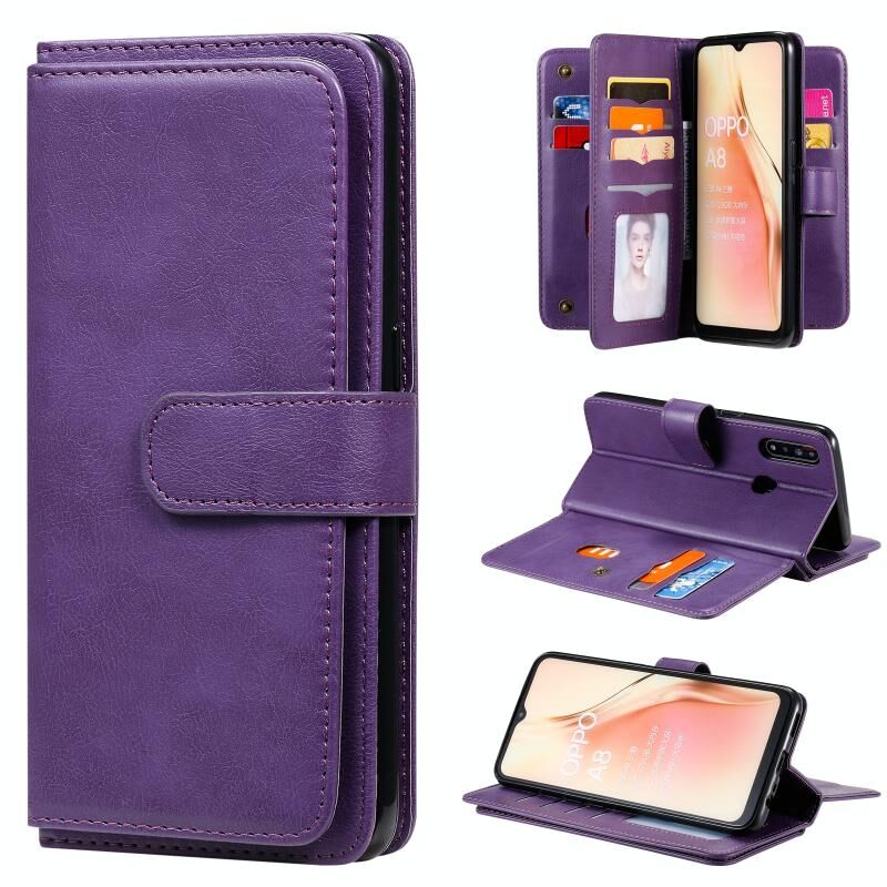 Για OPPO A8 / A31 (2020) Πολυλειτουργική Μαγνητική Θήκη Δερμάτινη Οριζόντια με Αγκράφα από Χαλκό σε Μονόχρωμο Σχέδιο με 10 Θήκες Καρτών & Πορτοφόλι & Στήριξη & Κορνίζα Φωτογραφιών (Μωβ)