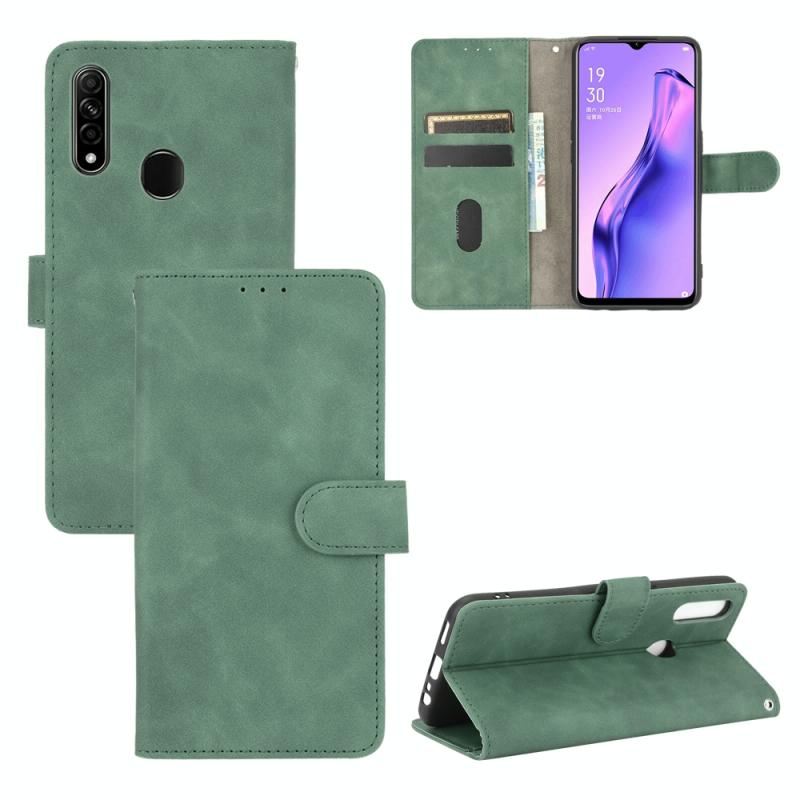For OPPO A8 / A31 (2020) Solid Color Skin Feel Magnetic Buckle Horizontal Flip Calf Texture PU Leather Case with Holder & Card Slots & Wallet(Green)