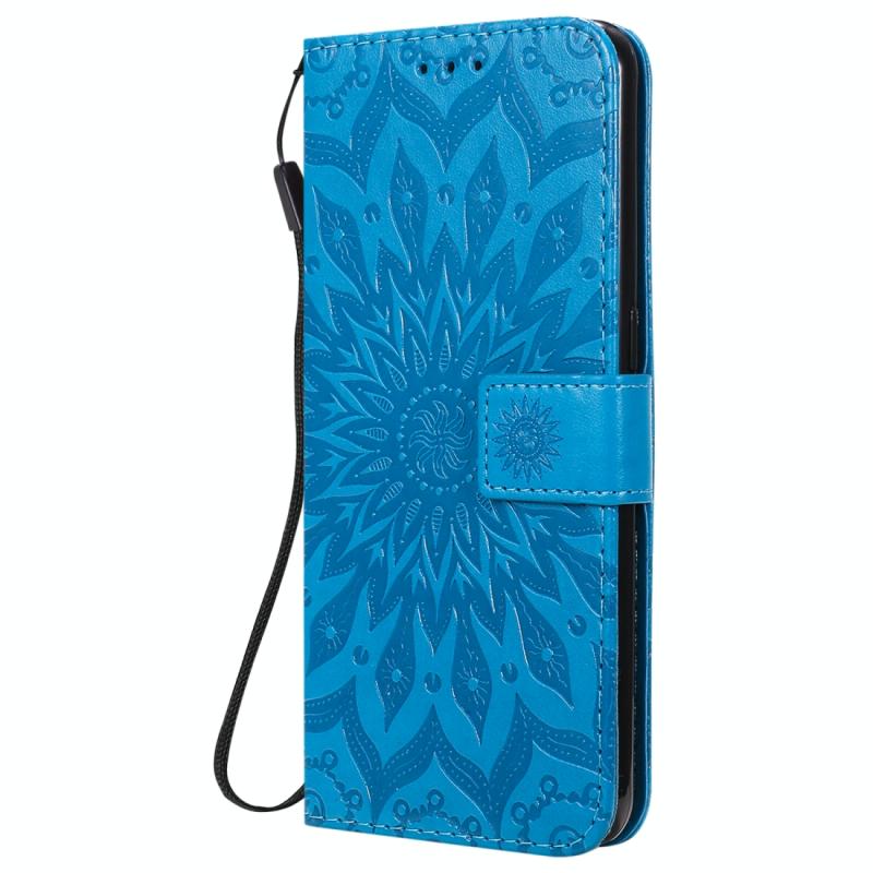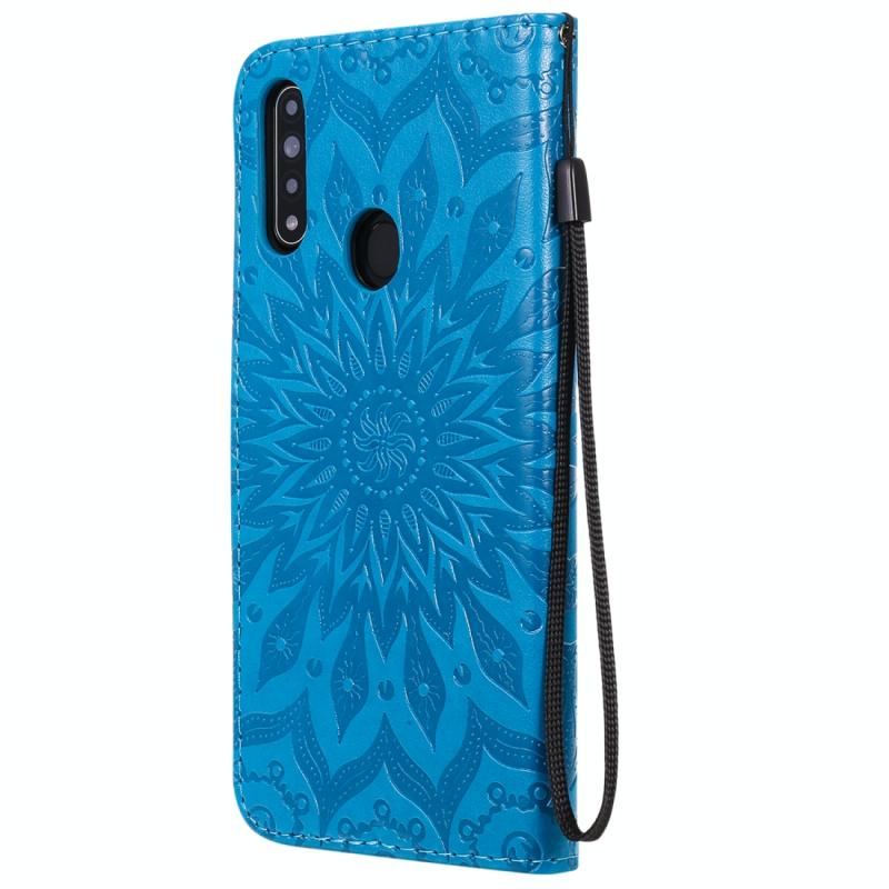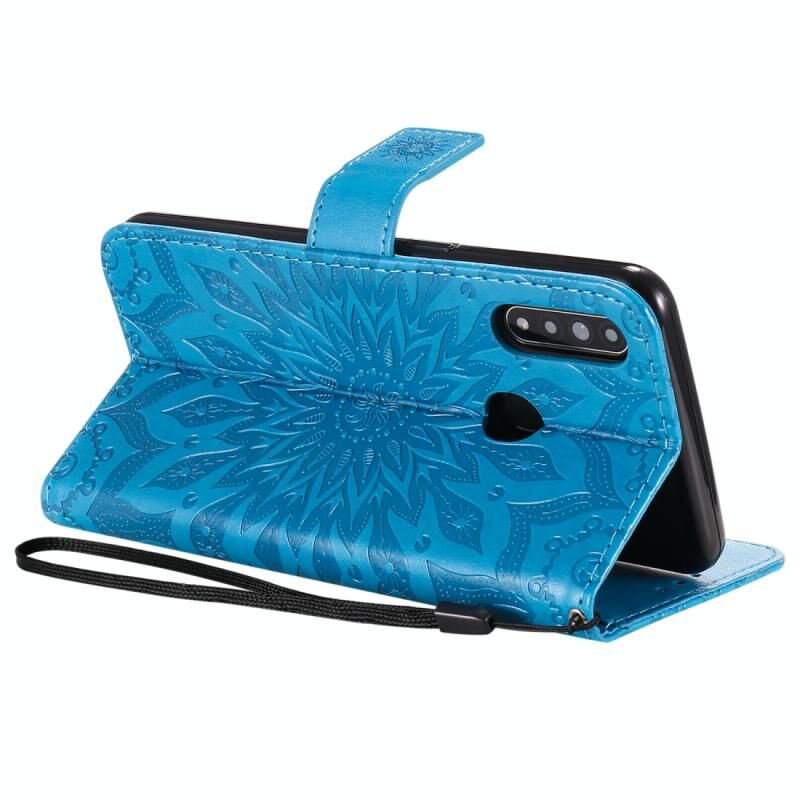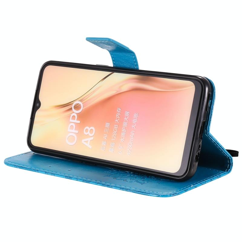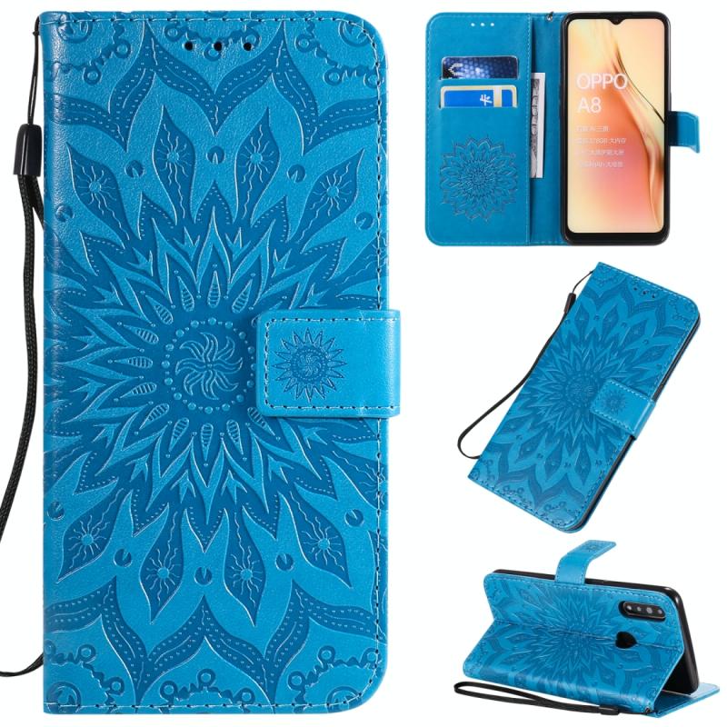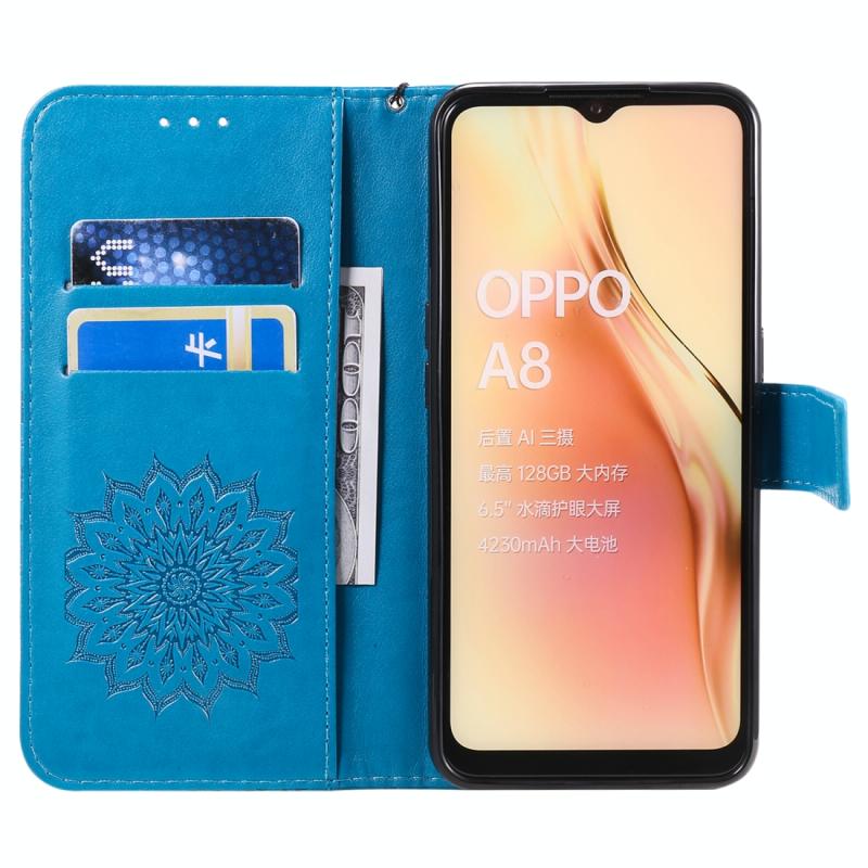 Θήκη για OPPO A8 / A31 με εκτύπωση λουλουδιών, οριζόντια αναδιπλούμενη από δερματίνη PU με βάση στήριξης & θήκες καρτών & πορτοφόλι & κορδόνι (Μπλε)