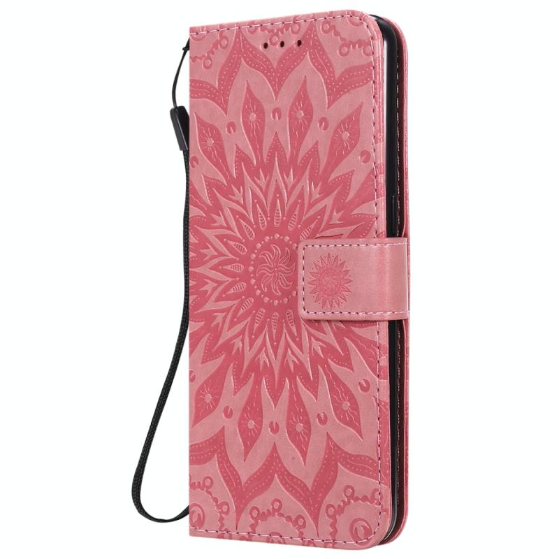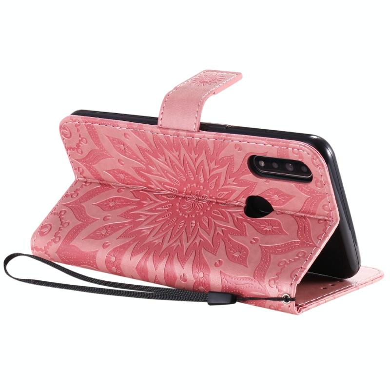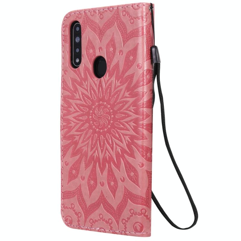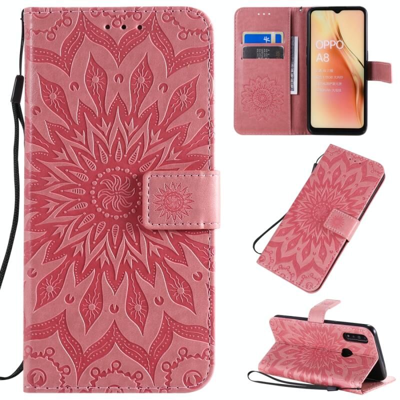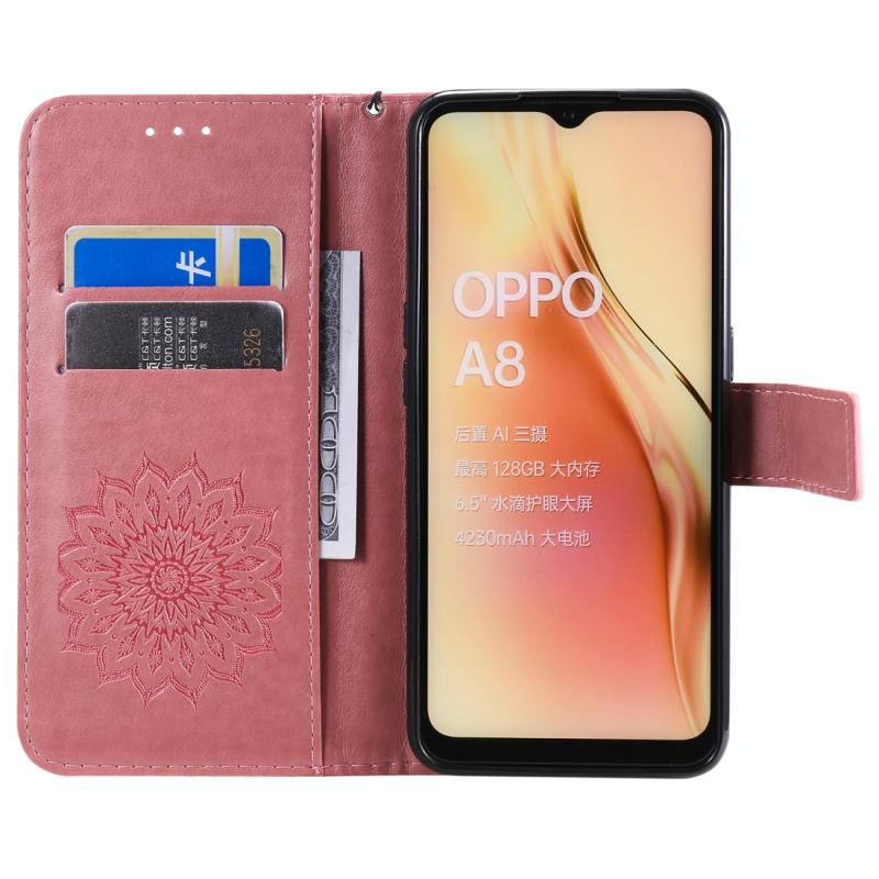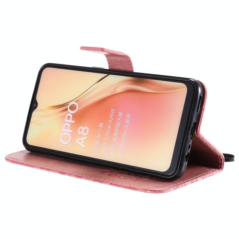 Θήκη για OPPO A8 / A31 με εκτύπωση λουλουδιών, οριζόντια αναδιπλούμενη από δερματίνη PU με βάση στήριξης & θήκες καρτών & πορτοφόλι & κορδόνι (ρόζ)