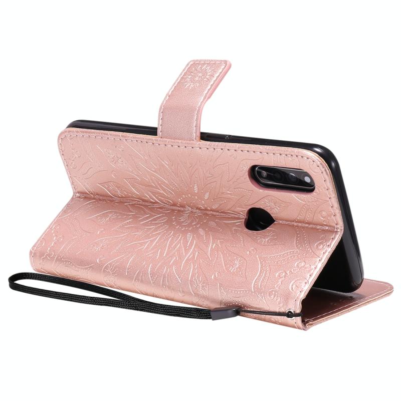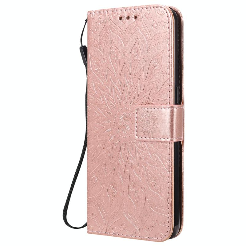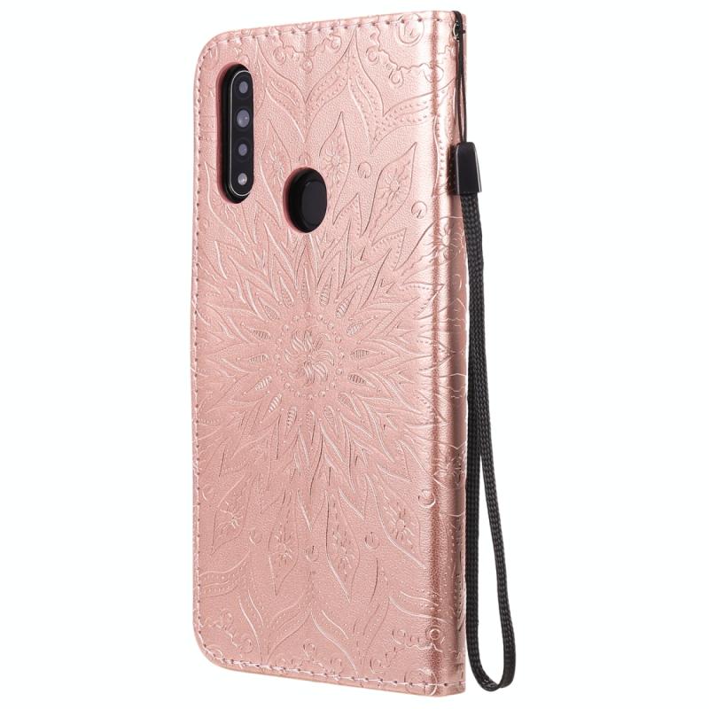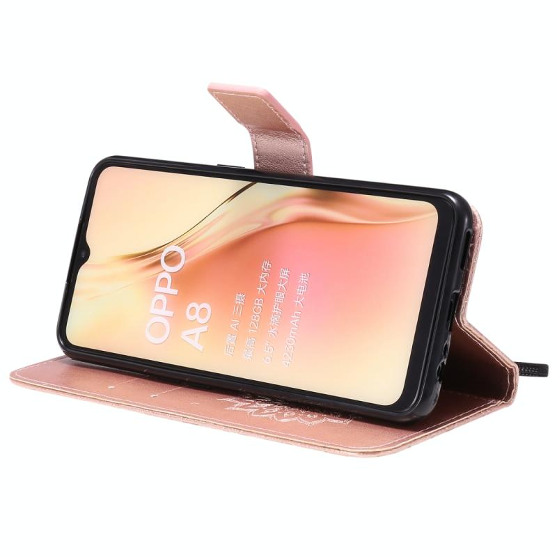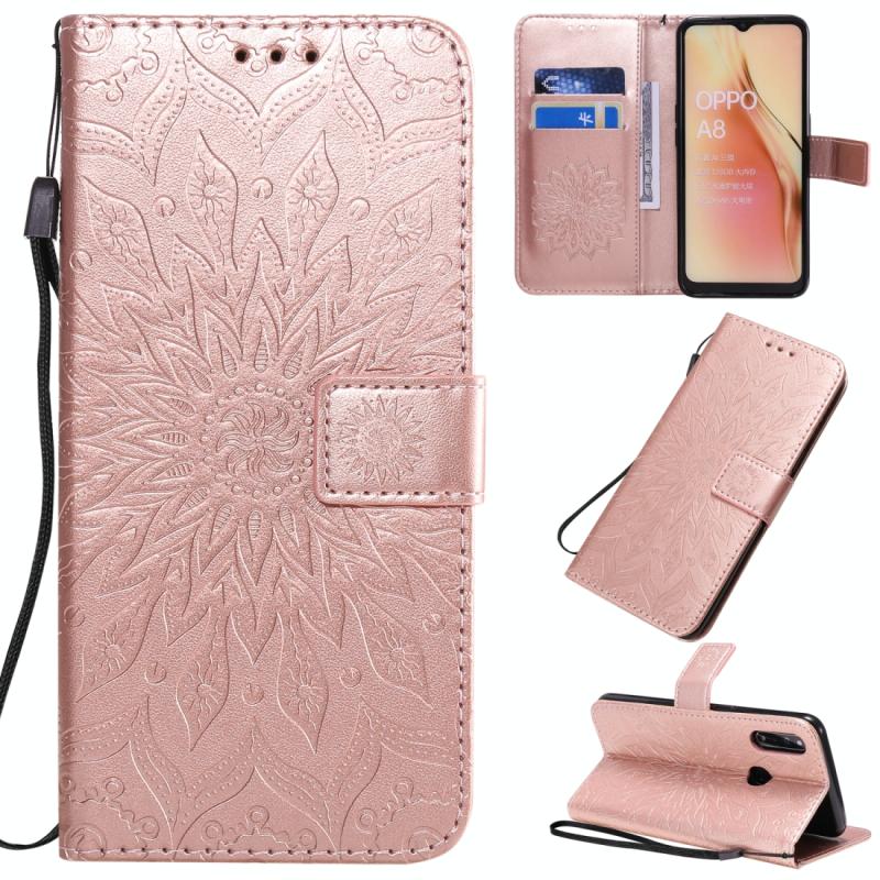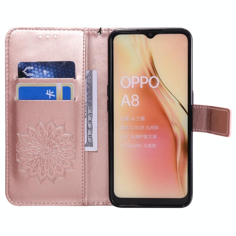 Θήκη για OPPO A8 / A31 με εκτύπωση λουλουδιών, οριζόντια αναδιπλούμενη από δερματίνη PU με βάση στήριξης & θήκες καρτών & πορτοφόλι & κορδόνι (Ροζ χρυσός)