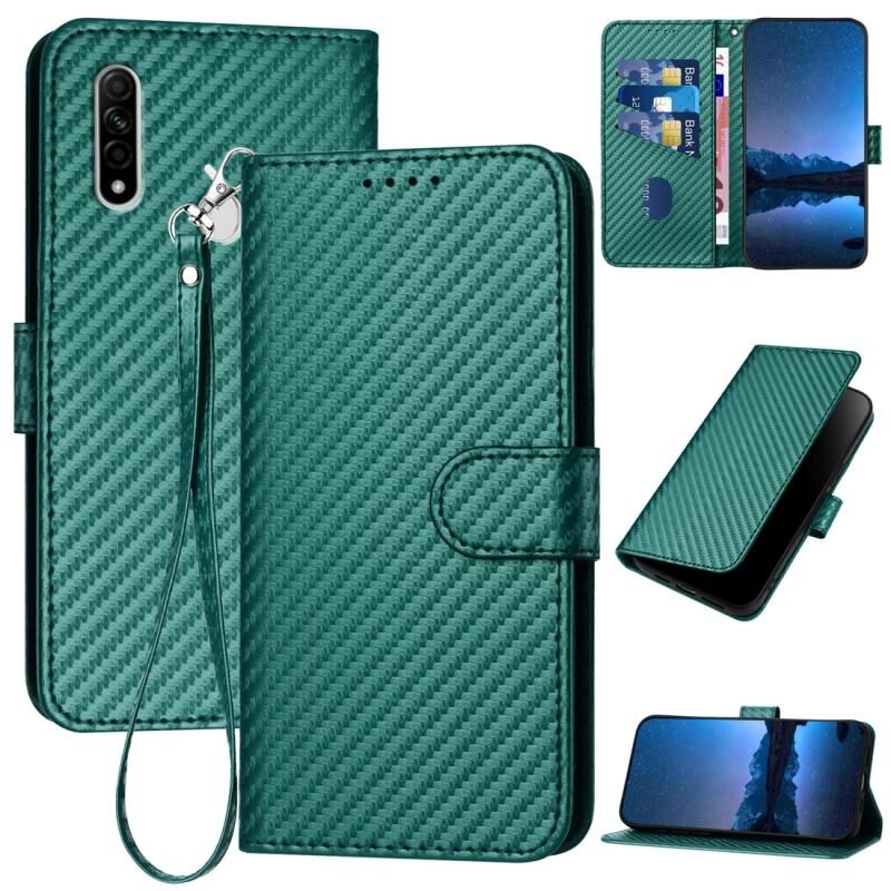 Θήκη τηλεφώνου από δέρμα με πόρπη από ανθρακονήματα για OPPO A8 / A31 YX0070 με κορδόνι (Σκούρο πράσινο)