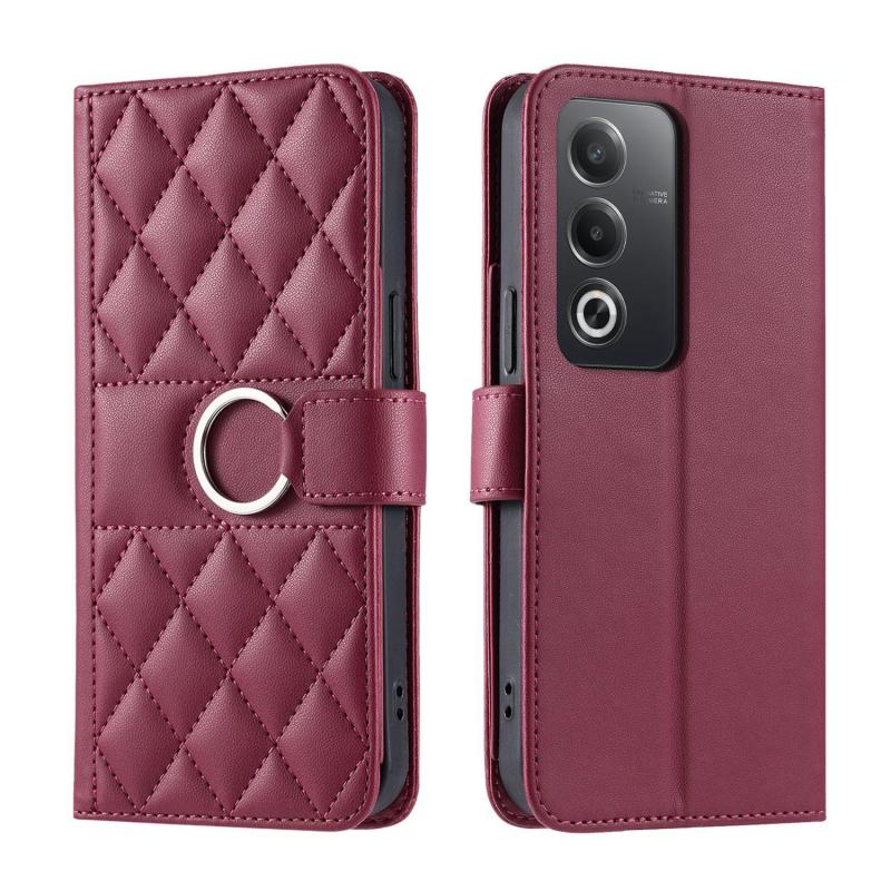 For OPPO A80 5G / A3 Pro Ring Buckle Rhombic Leather Phone Case(Red)