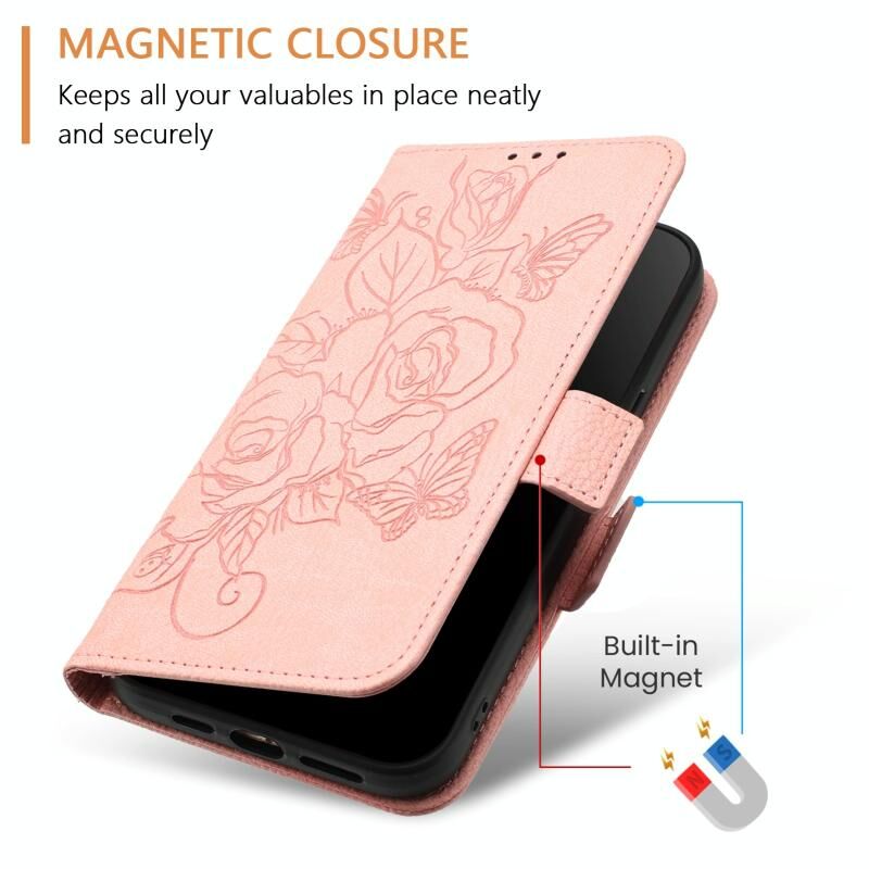 Για OPPO A80 5G ΕΕ ανάγλυφο Rose RFID Anti-theft Δερμάτινη θήκη τηλεφώνου (ρόζ)