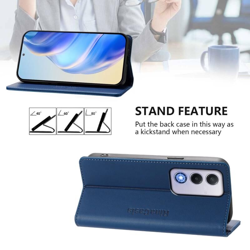 Θήκη τηλεφώνου δερμάτινη με μαγνητική απορρόφηση και διπλή πτύχωση για OPPO A80 5G EU / K12x 5G RC01 (Σκούρο μπλε)