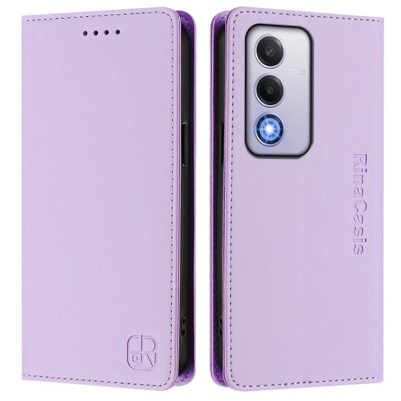 Θήκη τηλεφώνου δερμάτινη με μαγνητική απορρόφηση και διπλή πτύχωση για OPPO A80 5G EU / K12x 5G RC01 (ανοιχτό μωβ)