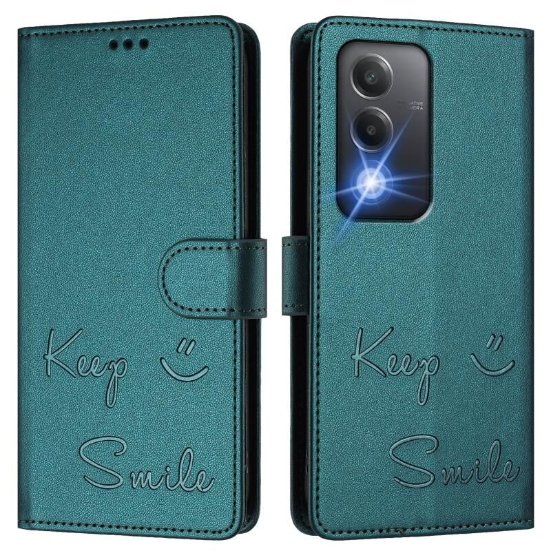 Για OPPO A80 5G ΕΕ χαμόγελο ανάγλυφο RFID δερμάτινη θήκη τηλεφώνου (Peacock Green)