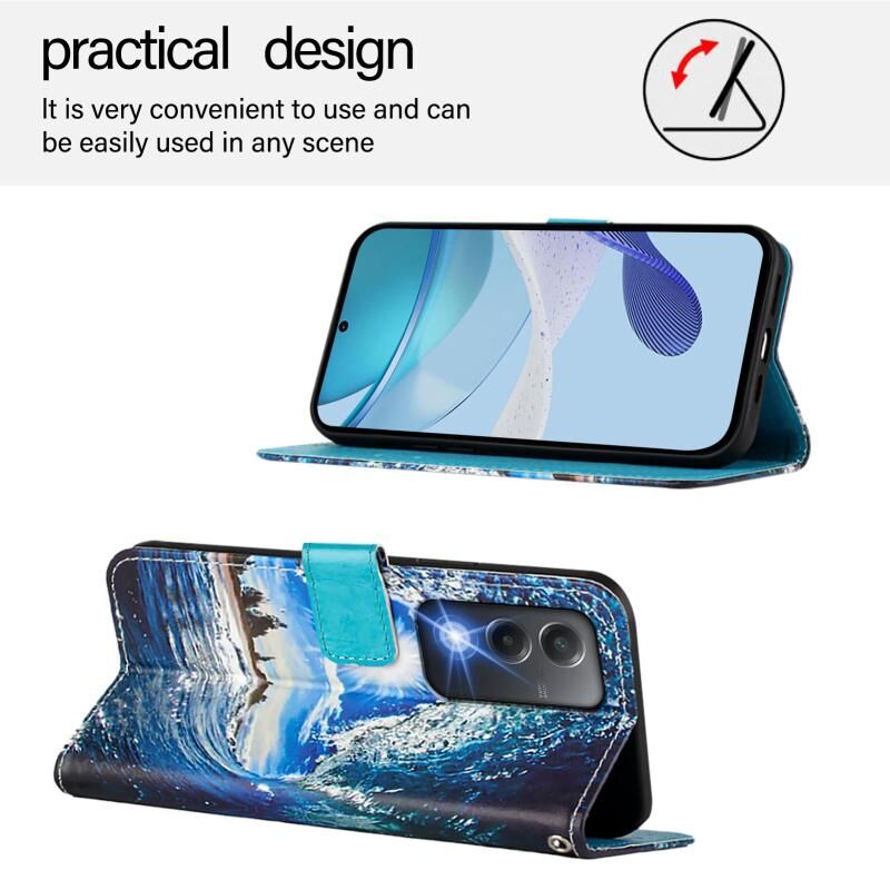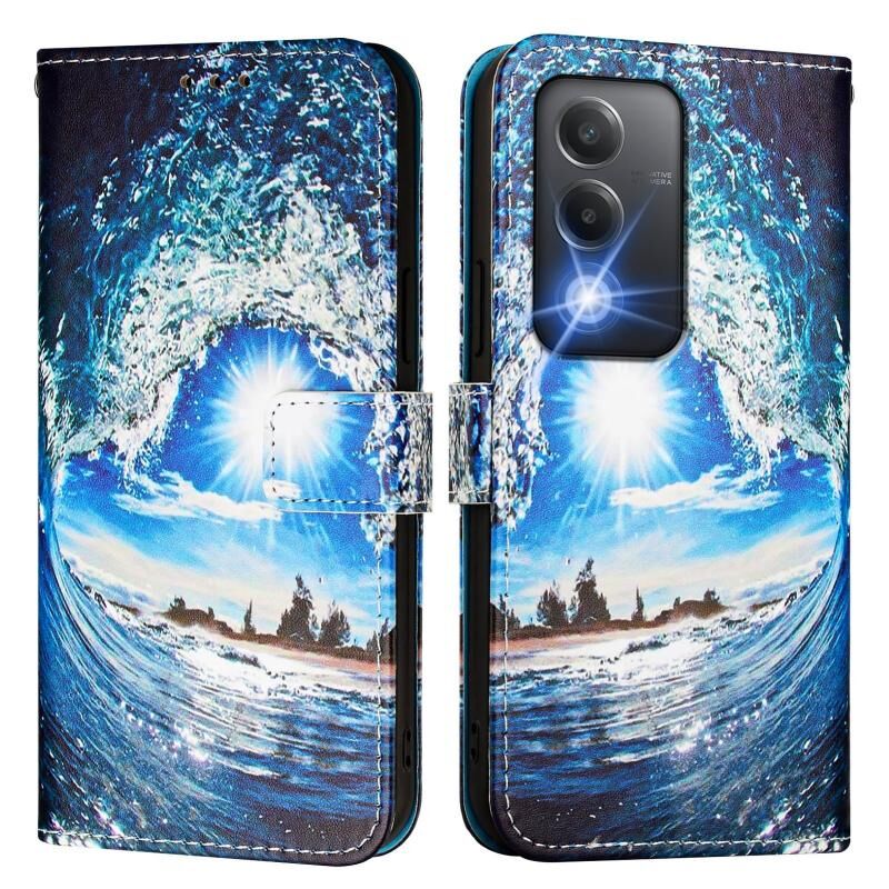 Θήκη τηλεφώνου από δέρμα με απλή ύφανση και πολύχρωμο σχέδιο για OPPO A80 5G Ευρωπαϊκής Έκδοσης (Κύματα και Ήλιος)