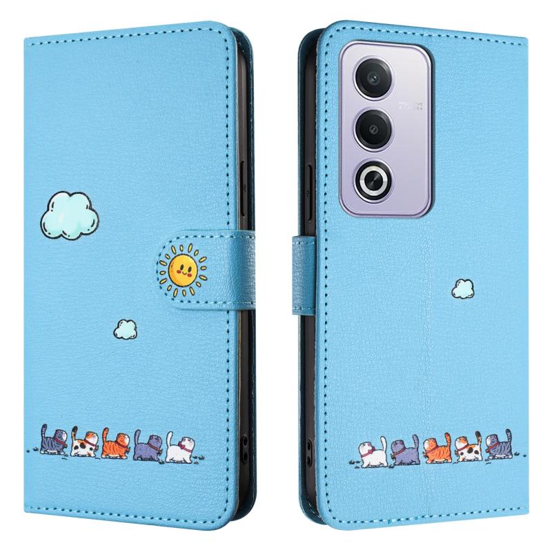 For OPPO A80 Cartoon Cats Leather Phone Case(Blue)