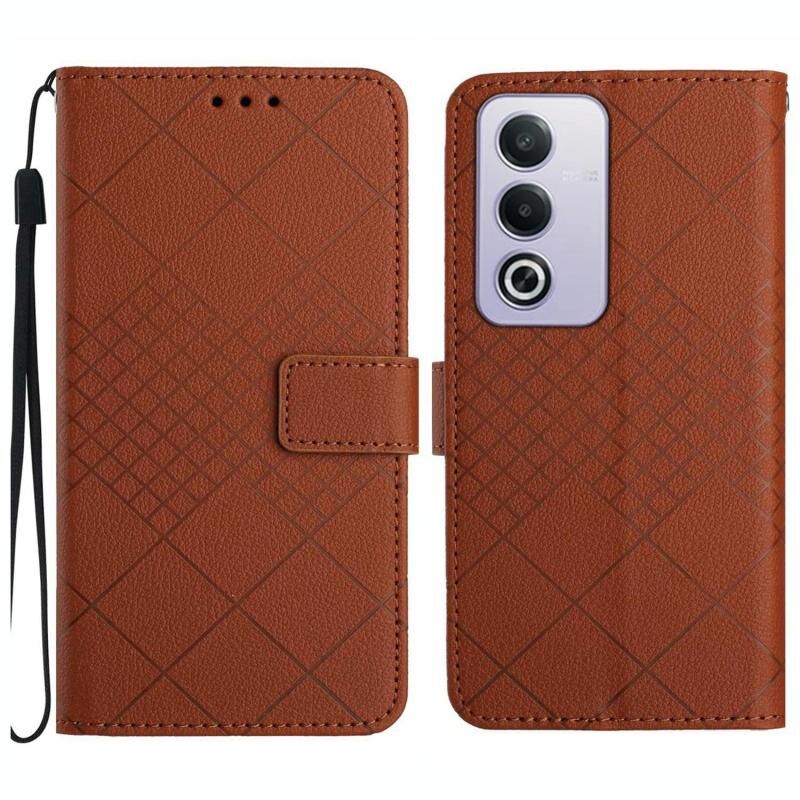 Για OPPO A80 ΕΕ / A3 Pro Global Rhombic Grid υφή δερμάτινη θήκη τηλεφώνου (Καφέ)