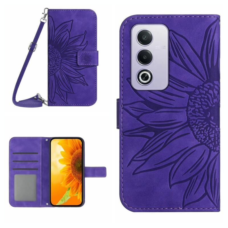 Για OPPO A80 ΕΕ / A3 Pro Global Skin Feel Sun Flower ανάγλυφο ανάγλυφο Flip δέρμα τηλέφωνο υπόθεση με κορδόνι (Σκούρο μωβ)